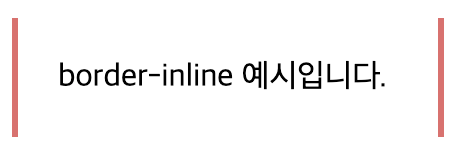 - border-inline : 논리적인 인라인 테두리 속성 값을 설정하기 위한 shorthand 속성입니다.
